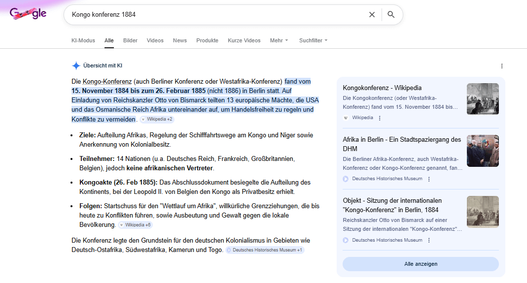 Und noch so ein übles Ding von Bismarck. Kennt Ihr die Kongo-Konferenz, die von Bismarck in Berlin ausgerufen wurde und in der Afrika aufgeteilt wurde. Billige Rohstoffe und Bodenschätze und ein ganzer „Haufen“ zusätzliche Sklaven. Das war Bismarck und das war sein „Deutsches Reich“. Dazu: Die Geburt der neuen Weltordnung: 1776: Das Jahr, in dem unsere Freiheit endete Raik Garve + Kongo-Konferenz 1884 – 1885 Bismarck